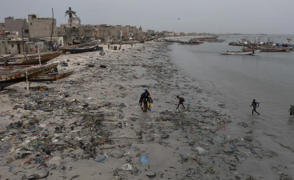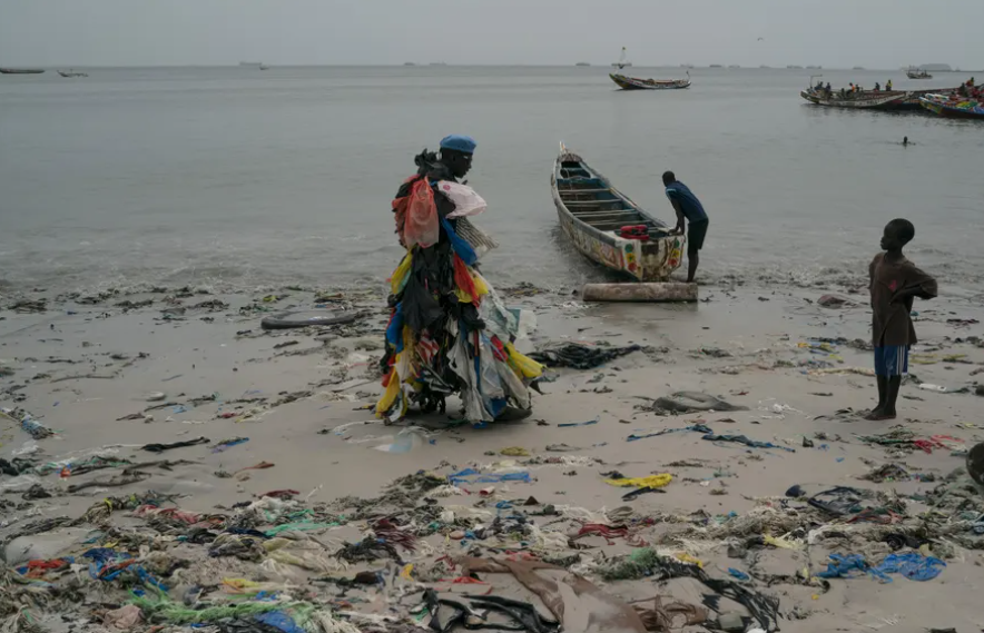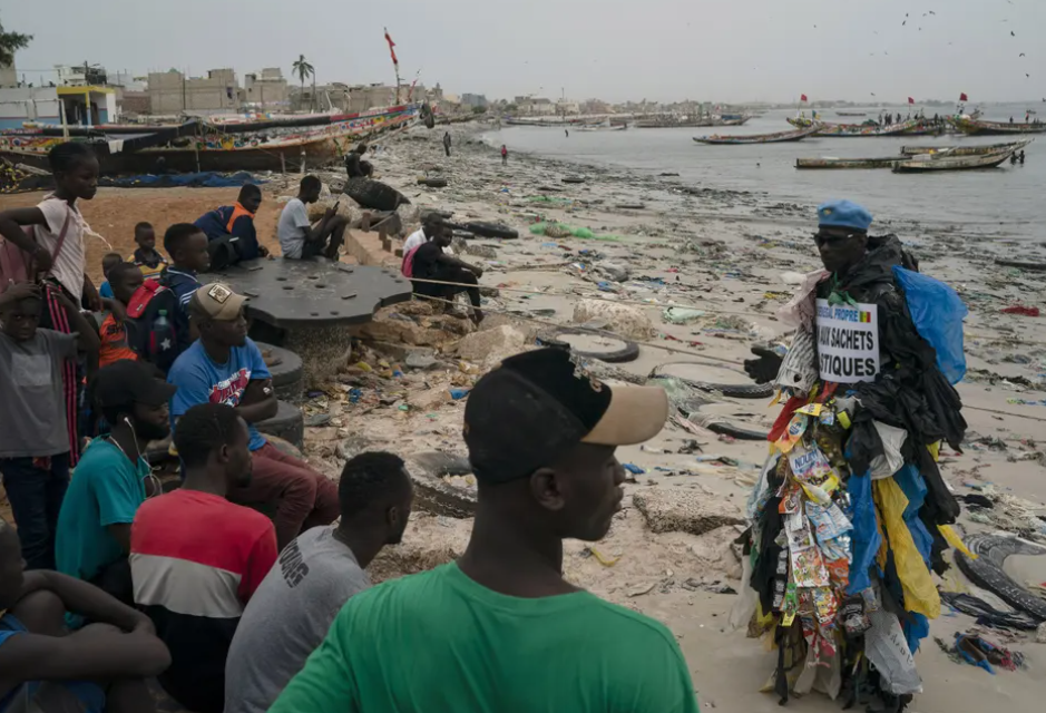 Në një plazh në Senegal me aq shumë mbeturina saqë pjesa më e madhe e rërës është e mbuluar, një burrë po përpiqet të rrisë ndërgjegjësimin për rreziqet e plastikës.