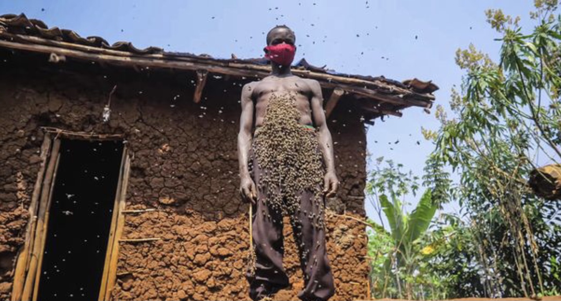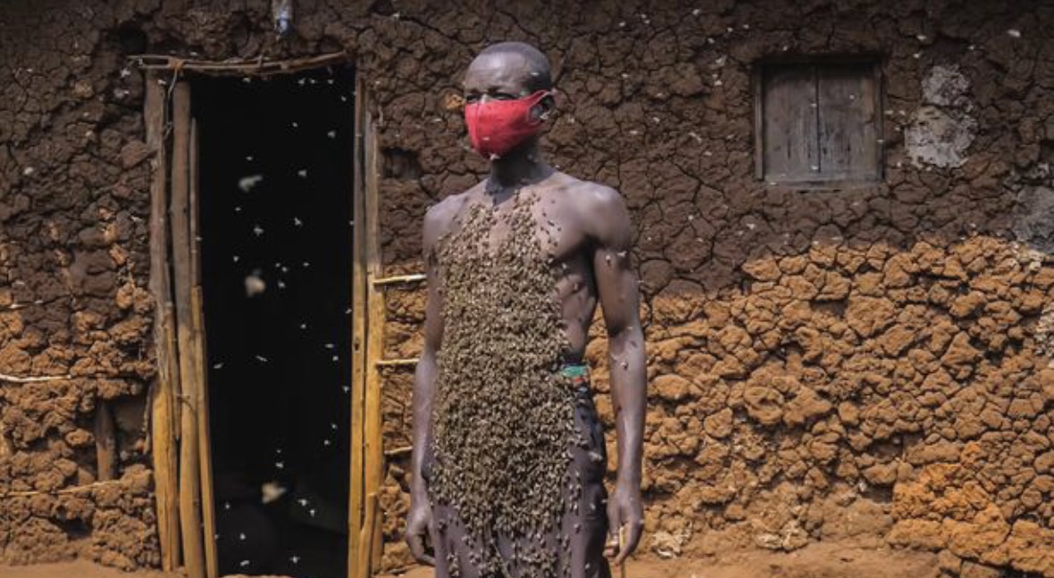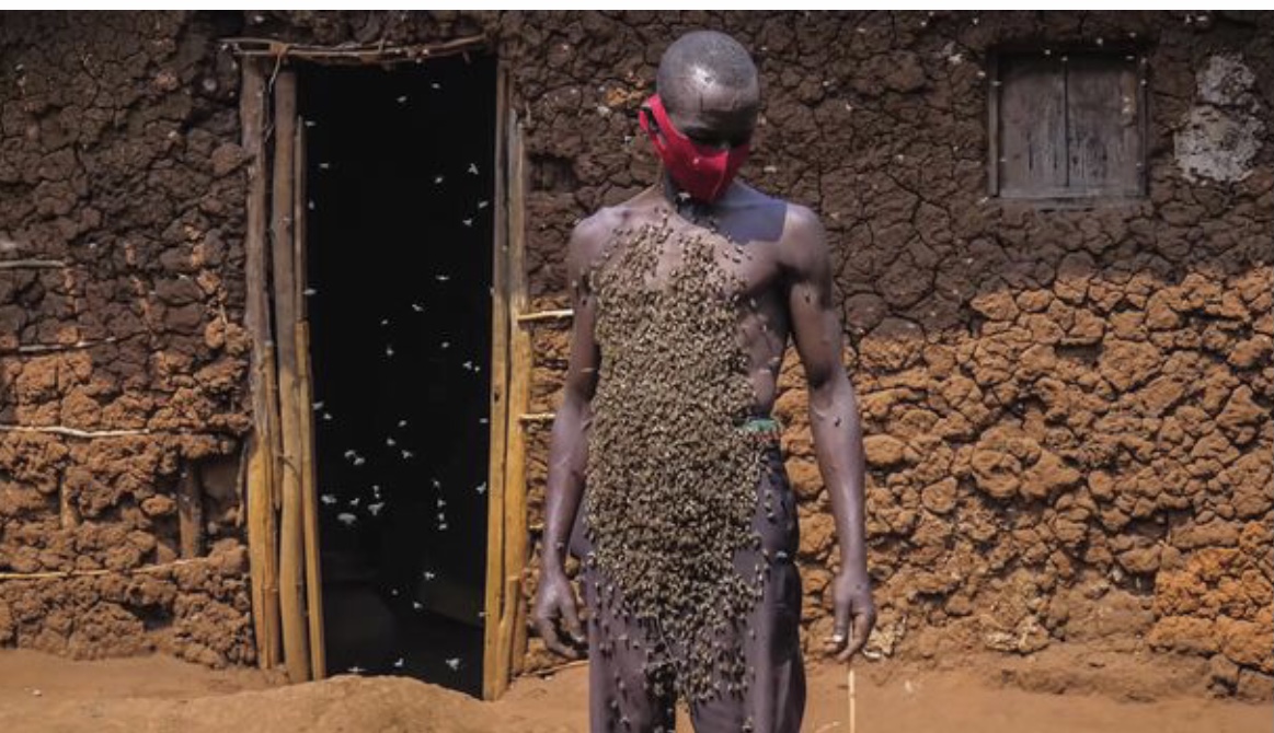 Ndayisaba, një bletar nga republika qendrore afrikane e Ruandës, është kujdesur për bletët që kur ishte fëmijë, por ka fituar famë të madhe pasi u shfaqën një seri fotografish në rrjetet sociale, ku shihej me mijëra bletë në trupin e tij.