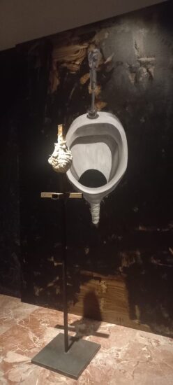 Dhe sërish këtë dimension na e përshfaq në instalacionin e madh të vendosur në qendër të hollit, ku disa lecka pastrimi gjigante bashkohen në një kulm. Elementi i pastrimit shfaqet si një nevojë e ngutshme për të rikonceptuar ekzistencën tonë shpirtërore, e cila shpesh plogështohet nga ambienti përreth.