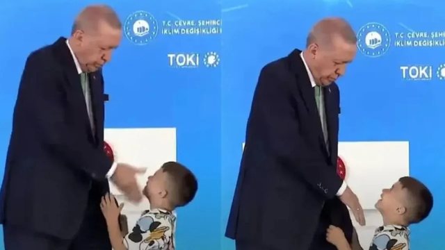 Kur djali i vogël ndaloi për disa sekonda dhe vetëm ia nguli sytë presidentit, ai e goditi me shuplakë. Më pas fëmija puthi dorën e presidentit. Në të njëjtën kohë, presidenti i Turqisë i ka dhënë para vëllait të tij të madh, diçka që e ka bërë edhe në të kaluarën.