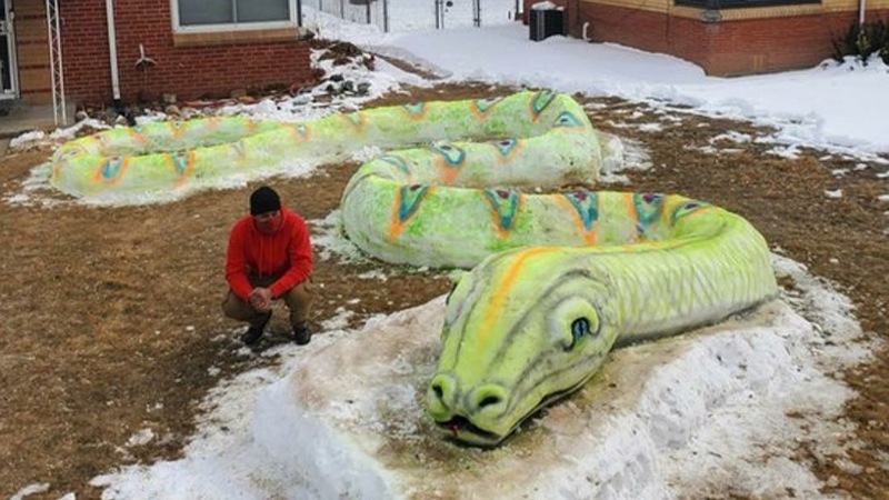 Krijimi i plakut prej bore është një “sport” mjaft i përdorur nga njerëzit sa herë që ka borë. Këtë “sport” një familje nga Kolorado e ka çuar në tjetër nivel. Ka ndërtuar një gjarpër të gjatë 23 metra, me borë.