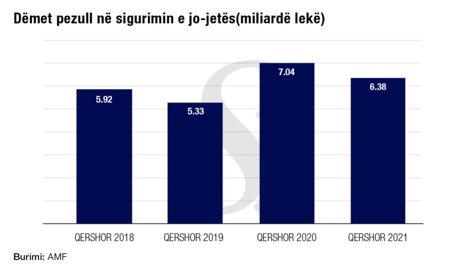 Ndërkohë, dëmet pezull kanë shënuar një rritje të ndjeshme për kompanitë e sigurimit të jetës.