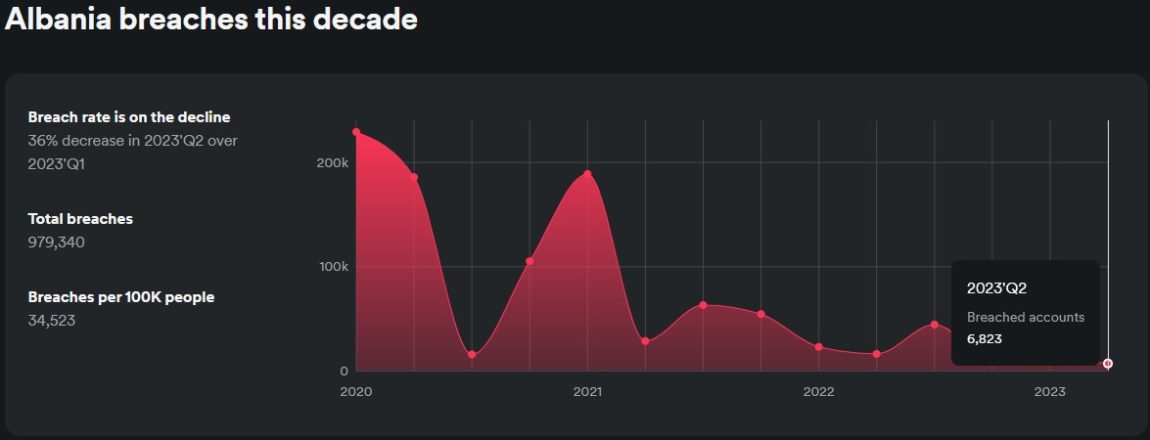 Numri i shkeljeve të të dhënave ka pësuar një rënie prej 36% gjatë tremujorit të dytë në Shqipëri në raport me tremujorin e parë. Në total janë regjistruar 6.8 mijë llogari të shkelura, që përkthehet në 2 llogari të shkelura për 1 mijë banorë.