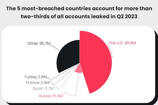 Pavarësisht se është vendi me më shumë llogari të shkelura në tremujorin e parë, llogaritë ruse përfaqësojnë më pak se 14% të të gjitha llogarive të shkelura në tremujorin e dytë.