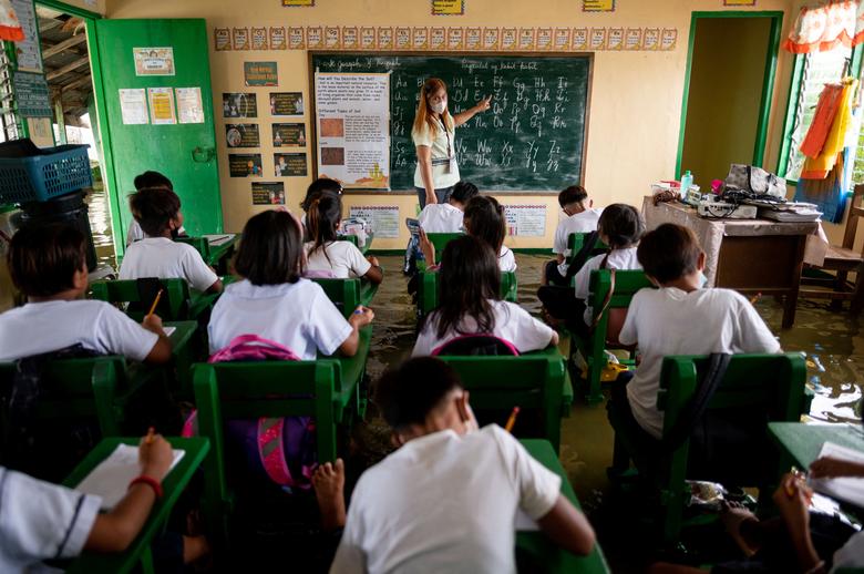Nxënësit filipinas u kthyen në klasa për herë të parë në më shumë se dy vjet të hënën, pasi vendi hoqi shumicën e kufizimeve të mbetura të Covid. Ato i kanë gjetur klasat të përmbytura për shkak të shirave të dendur të ditëve të fundit.