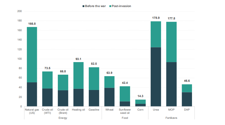 Në raport gjendet dhe grafiku i para dhe pas luftës në Ukrainë, sipas produkteve me rëndësi jetike që pësuan rritjen më të madhe, për shkak të “lojës ruse”.