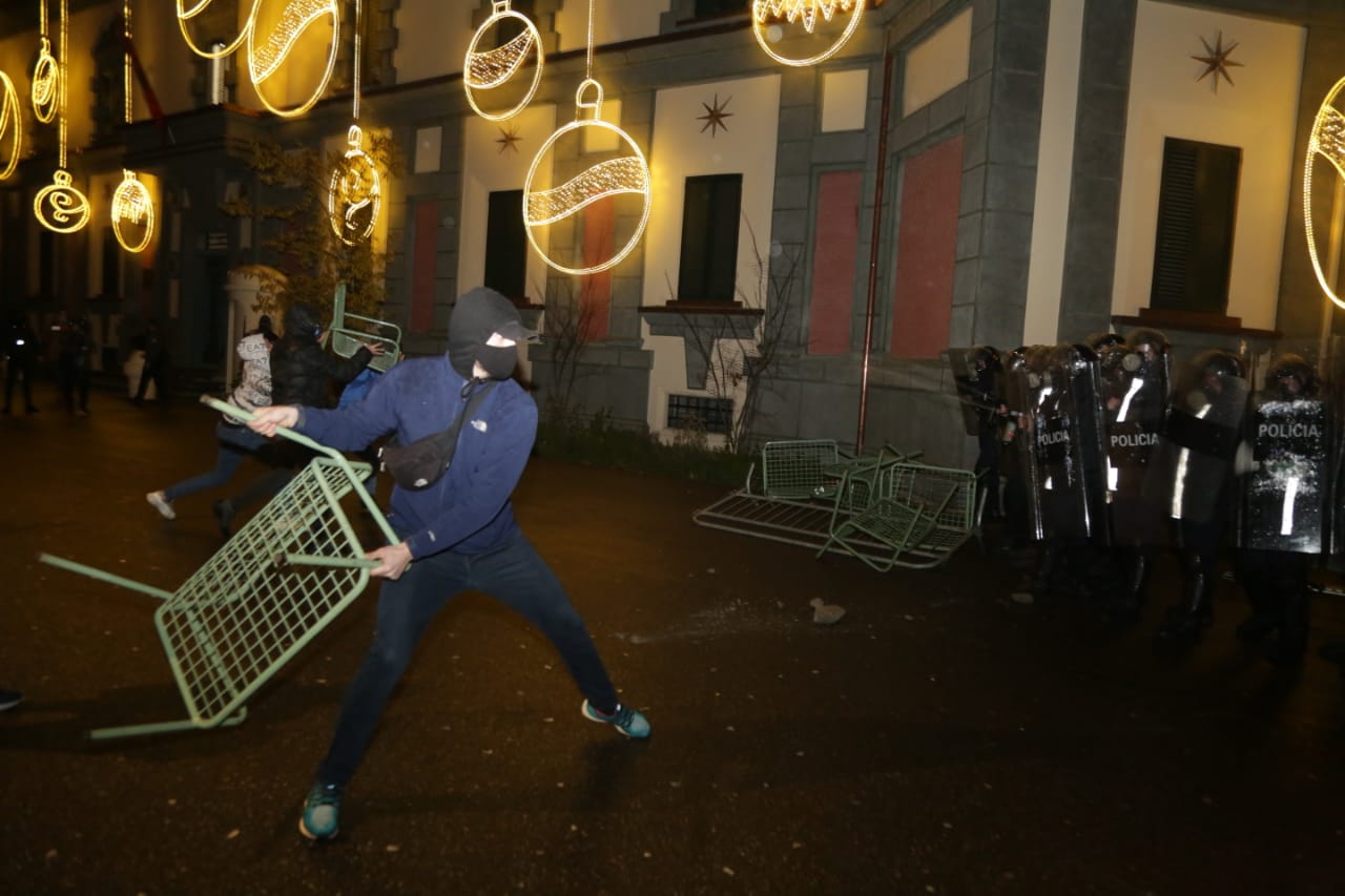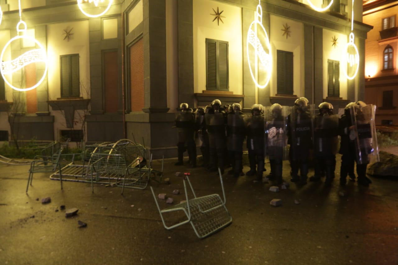 Mbi dy orë kaos dhe tension në kryeqytet. Djegie koshash, xhama të thyer institucioneve, gurë, hekura dhe pllaka të shkulur, semafore te prishur, ishte panorama e Bulevardit “Dëshmorët e Kombit” nga Sheshi “Skenderbej” e deri tek ish-Zona e Bllokut, shkaktuar nga një grup protestuesish të rinj në moshë, e nisur fillimisht në shenje proteste ndaj vrasjes së 25 vjeçarit, Klodian Rasha nga një efektiv i Policisë, por që përfundoi në kaos dhe dhunë.