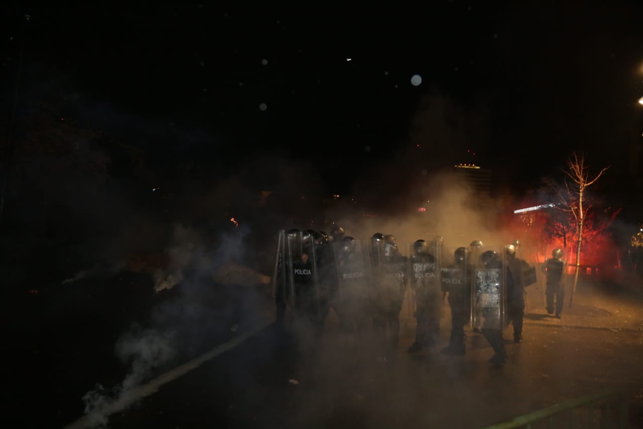 Situata vijoi të ishte kaotike mbi dy orë ndërsa një grup protestuesish herë shpërndaheshin nga ndërhyrja e Policisë me gas lotsjellës, e herë grumbulloheshin sërish në disa nyje të Tiranës, por larg kryeministrisë apo Ministrisë së Brendshme.