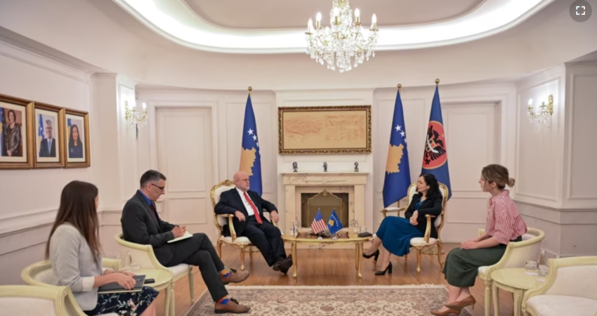 Presidentja e Kosovës, Vjosa Osmani, ka pritur të enjten në takim të rregullt ambasadorin e Shteteve të Bashkuara të Amerikës në Prishtinë, Jeffrey Hovenier, njofton Zyra e Presidentes së Kosovës.