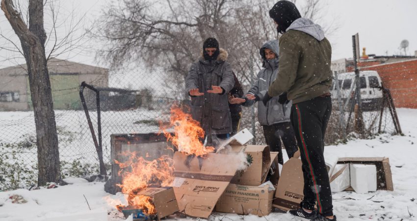 Ndërsa pritja vazhdon, fëmijët e Cañada Real bëjnë atë që bëjnë fëmijët në dëborë. Të rinjtë ndërtojnë njerëz prej bore, hedhin topa dëbore dhe rrëshqasin në argjinaturat e ngrira në thasë plehrash. Të moshuarit hedhin fletë kartoni në zjarre të improvizuara për disa sekonda, duke qenë të vetëdijshëm se ata do të jenë më të ngrohtë jashtë sesa do të ishin brenda.