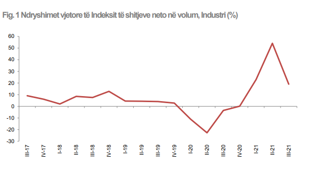 Indeksi i shitjeve neto në volum shënoi rritje 1.7%, krahasuar me të njëjtën periudhë të një viti më parë. Indeksi i prodhimit në volum shënoi u rrit me 1.0%, krahasuar me të njëjtën periudhë të vitit të kaluar. Indeksi i numrit të të punësuarve shënoi rritje me 2.2%, krahasuar me të njëjtën periudhë të një viti më parë dhe fondi i pagave shënoi rritje 7.3%, krahasuar me të njëjtën periudhë të vitit 2020.