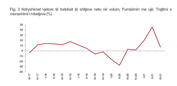 Indeksi i shitjeve neto në volum shënoi rritje 7.3%, në bizneset e ujit dhe menaxhimit të mbetjeve krahasuar me të njëjtën periudhë të një viti më parë.