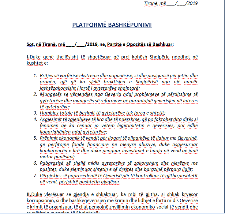Sipas tij nuk përcaktohet qartë se kjo platformë bashkëpunimi është për zgjedhjet vendore apo të përgjithshmet.