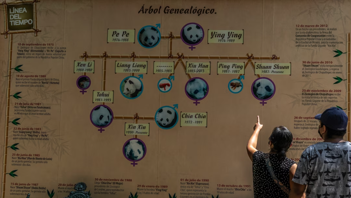 Kina i ka dhuruar kopshtit zoologjik meksikan dy panda në vitin 1975. Sot, Xin Xin, mbesa e dy pandave të dhuruara është e fundit e llojit të saj në Amerikën Latine dhe një nga vetëm 3 të mbetura në botë. Ajo ka 5 vite që të arrijë jetëgjatësinë rekord të një pande që është në kopsht zoologjik.