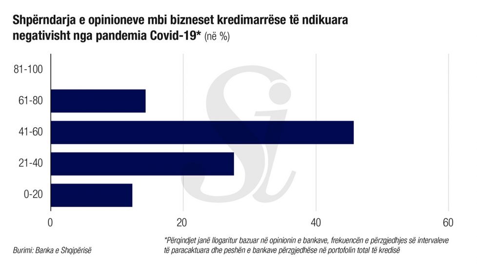 Pandemia ka pasur një ndikim negativ në të ardhurat e rreth 40 deri në 60% të bizneseve kredimarrëse.