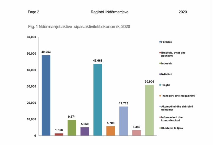 Sipas të dhënave të regjistrit të ndërmarrjeve nga INSTAT, në total numri i ndërmarrjeve në vend pa përfshirë fermerët dhe bujqësinë ishte gati 116 mijë subjekte, duke pësuar një rënie të lehtë me -0.5% në krahasim me vitin e kaluar.