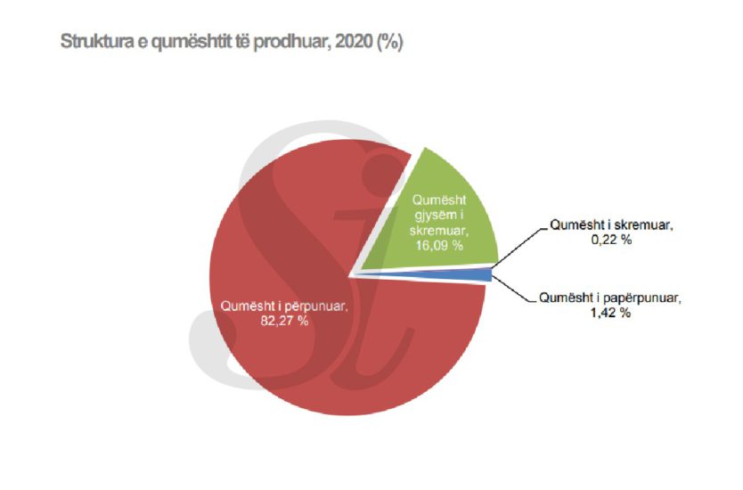 “Struktura e qumështit të prodhuar paraqitet si më poshtë: qumështi i plotë i përpunuar 82,27%, qumështi gjysmë i skremuar 16,09%, qumështi i papërpunuar 1,42% dhe qumështi i skremuar 0,22%”, thekson INSTAT.