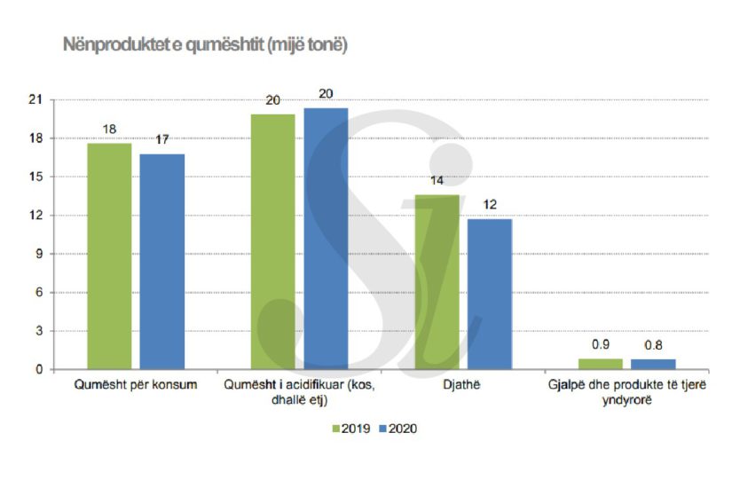 Gjithashtu raporti shton se sasia e qumështit të prodhuar për konsum, është rreth 17 mijë tonë, duke pësuar një rënie me 4,72%, krahasuar me 2019.