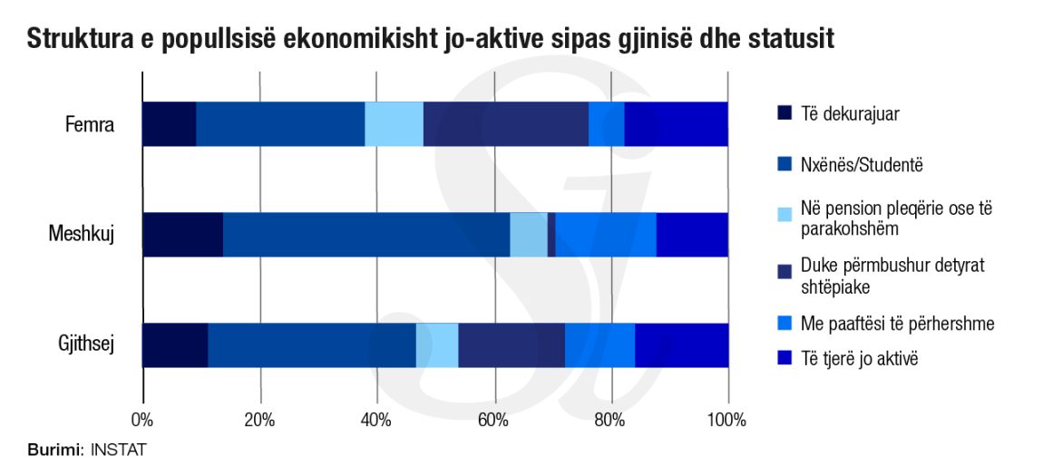 Gjatë tremujorit të dytë të vitit 2022, 17.7 % e popullsisë ekonomikisht jo-aktive dhe në moshë pune (15-64 vjeç) ishin duke përmbushur detyrat shtëpiake, 8.0 % e saj ishte në pension ose pension të parakohshëm, ndërsa 11.8 % në paaftësi të përhershme.