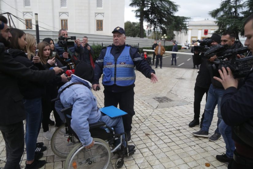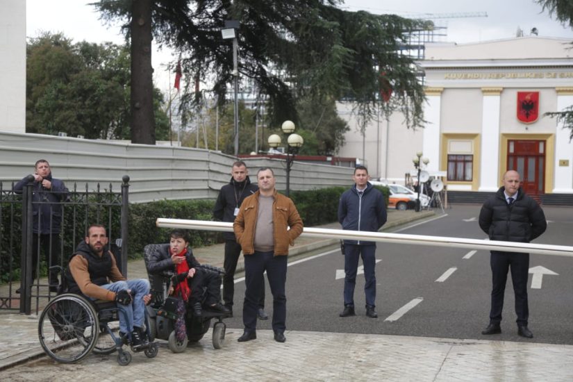 Personat para-tetraplegjikë, pas protestës ditën e djeshme para kryeministrisë, këtë të enjte protestuan përpara godinës së Parlamentit ku deputetët ishin mbledhur në seancë plenare.