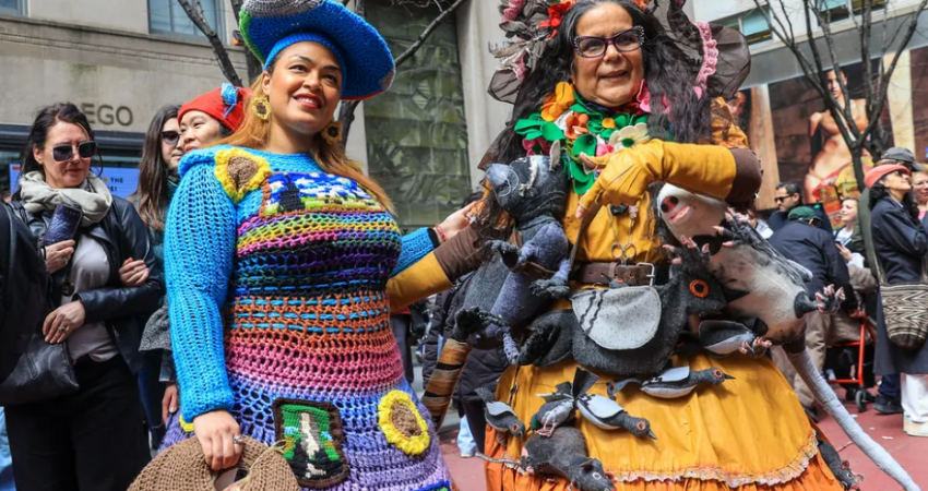 Në një traditë që daton në vitet 1870, njujorkezët u veshën të dielën e Pashkëve me aksesorë krijuese dhe të çuditshme për të marrë pjesë në paradën vjetore të Pashkëve në Manhattan.