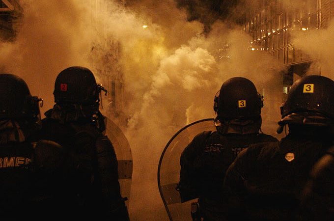 Policia franceze duke perdorur gazin lotsjelles ne nje tubim te 2007