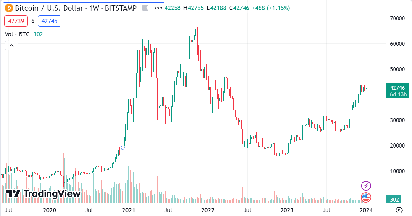 Për sa kohë BTC/USD do të tregtohet nën rezistencën 42850 trenda do të jetë korrektuese drejt targetit 40400.