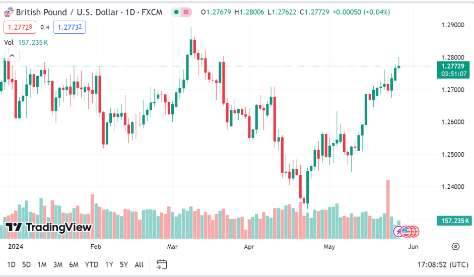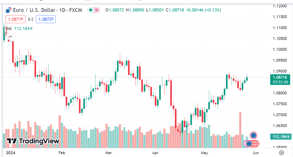 Nga Gazeta ‘Si’- Për sa kohë EUR/USD do të tregtohet mbi suportin 1.083 trenda gjatë javës(27maj-2 qershor) do të jetë bullish me target 1.091. Tregtimi nën vlerën e suportit të mësipërm do të pasohej nga testimi i suportit të radhës 1.079