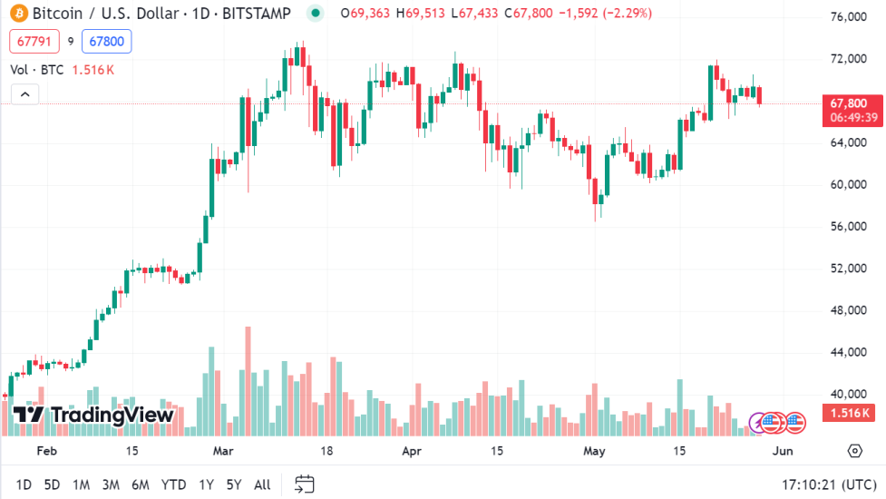 Për sa kohë BTC/USD do të tregtohet mbi vlerën 68400 trenda do të jetë pozitive me target 72500. Tregtimi nën vlerën 68400 do të pasohej nga testimi i suportit 66600