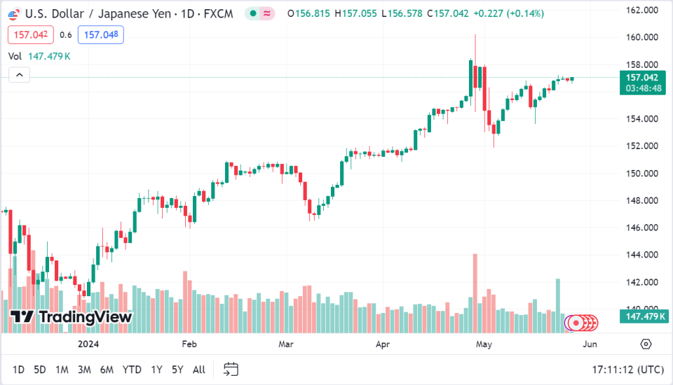 Për sa kohë USD/JPY do të tregtohet nën vlerën 157.15 trenda do të jetë rënëse drejt suportit 15.7. Tregtimi mbi vlerën 157.15 hap rrugën për avancim drejt rezistencës 158