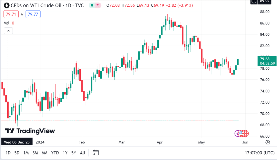 Për sa kohë CRUDE OIL do të tregtohet mbi vlerën 77.3 trenda do të jetë rritëse me target 80.1.