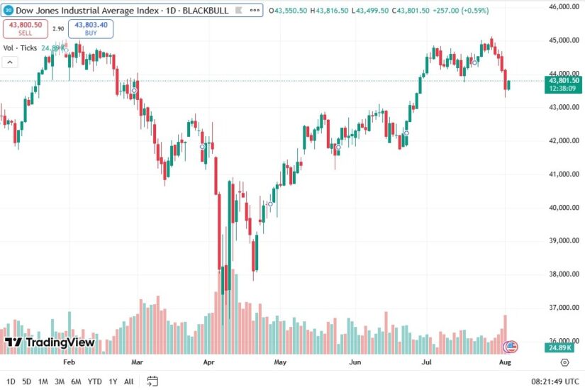 Për sa kohë DOW JONES do të tregtohet nën vlerën 45100 trenda do të jetë rënëse me target 44600. Tregtimi mbi vlerën 45100 do të ndiqej nga avancimi mëtejshëm me target 45600.