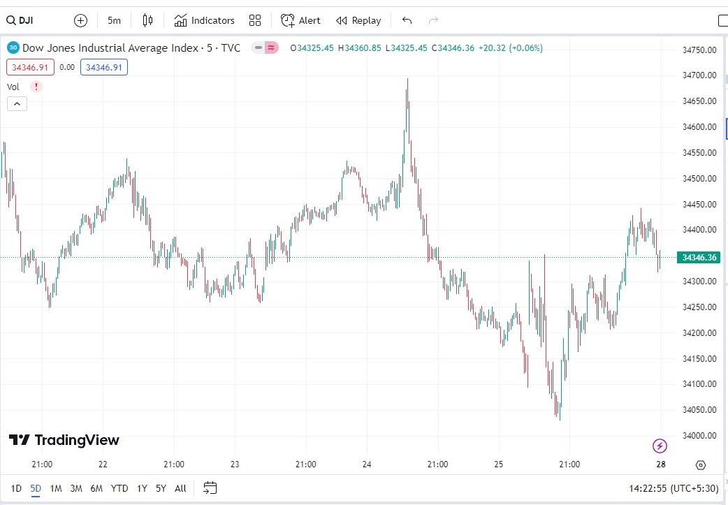 Për sa kohë DOW JONES do të tregtohet mbi vlerën 34324 trenda do të jetë bullish me target të parë 34590 e më pas 34720. Tregtimi nën vlerën 34324 do të pasohej nga testimi i suportit 33800