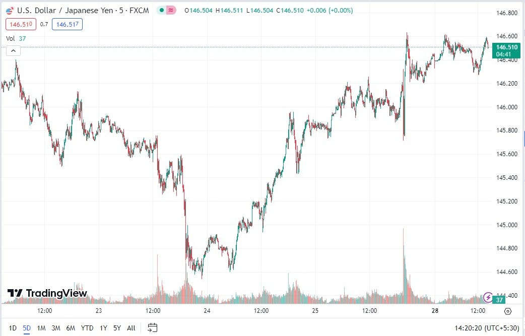 Për sa kohë USD/JPY do të tregtohet mbi vlerën 146.3 trenda do të jetë rritëse me target 147.5. Tregtimi nën vlerën 146.3 do të pasohej nga testimi i suportit 146.2 çarja e të cilit e thellon rënien drejt suportit të radhës 145.9