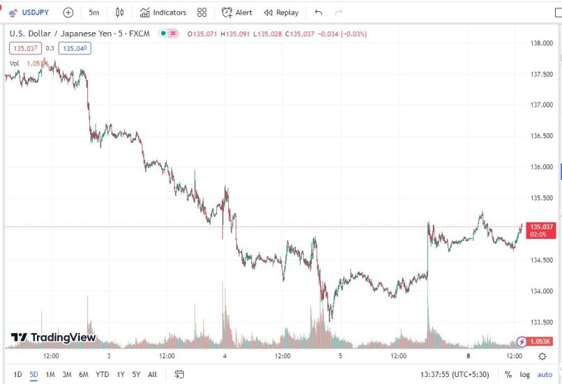 Për sa kohë USD/JPY tregtohet nën 135.12 trenda do të jete bearish me target 132. Tregtimi mbi 135.12 do pasohej nga testimi i rezistencës 136.5.