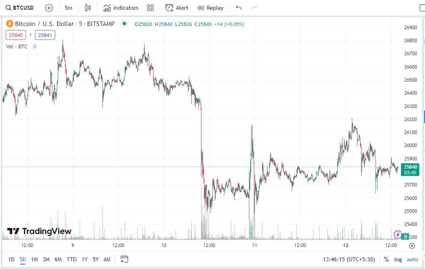 Për sa kohë BTC/USD tregtohet nën vlerën 26150 trenda do të jetë bearish me target 24700. Tregtimi mbi rezistencën 26150 do të pasohej nga testimi i rezistencës së radhës 26700-26850