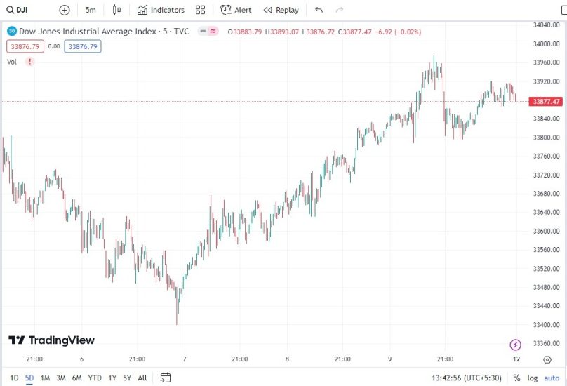 Për sa kohë DOW JONES tregtohet mbi suportin 33600 trenda do të jetë pozitive me target 34700-34900. Tregtimi nën vlerën 33600 do të pasohej nga testimi i suportit 33150