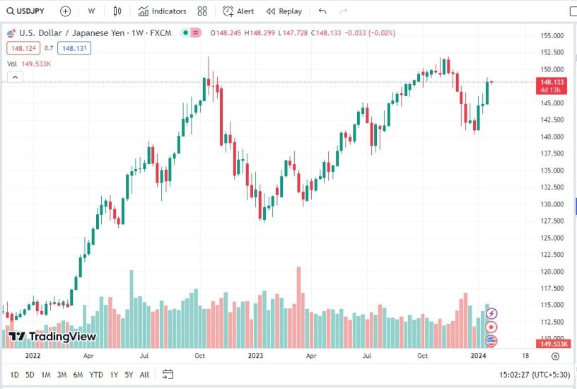 Për sa kohë USD/JPY do të tregtohet nën vlerën 148.8 trenda do të jetë rënëse me target paraprak 147.34 e më pas 145.7. Tregtimi mbi vlerën 148.8 hap rrugën për avancim të mëtejshëm me target 149.65