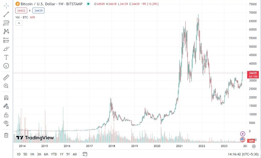 Për sa kohë BTC/USD do të tregtohet mbi vlerën 33400 trenda do të jetë bullish me target 38500. Tregtimi nën vlerën 33400 hap rrugën për testimin e suportit 34200, reagimi negativ ndaj të cilit e thellon rënien drejt suportit 32900