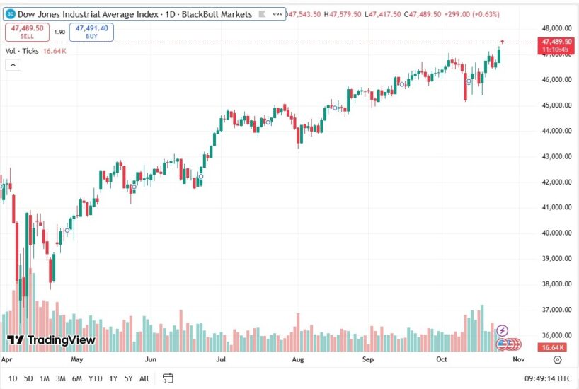 Për sa kohë DOW JONES do të tregtohet mbi vlerën 47000 trenda do të jetë rritëse me target 48000. Tregtimi nën vlerën 47000 hap rrugën për testimin e suportit 46650.