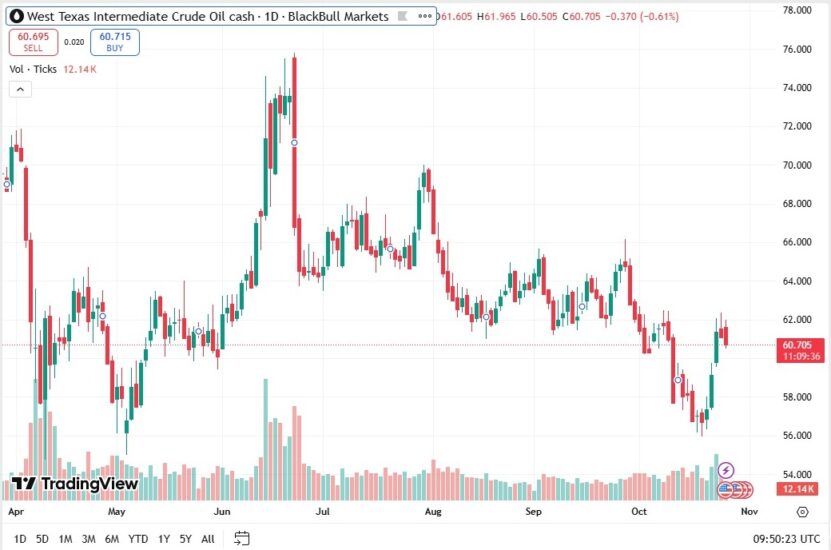Për sa kohë CRUDE OIL do të tregtohet nën vlerën 61.75 trenda do të jetë negative me target 60.40. Tregtimi mbi vlerën 61.75 do të ndiqej nga avancim i mëtejshëm me target 62.20.