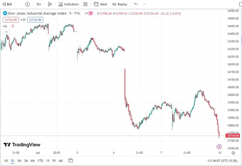 Për sa kohë DOW JONES do të tregtohet nën vlerën 33947 trenda do të jetë bearish me target 33275 e më pas 33075. Tregtimi mbi vlerën 33947, pak i mundshëm do pasohej nga testimi i rezistencës 34171-34323