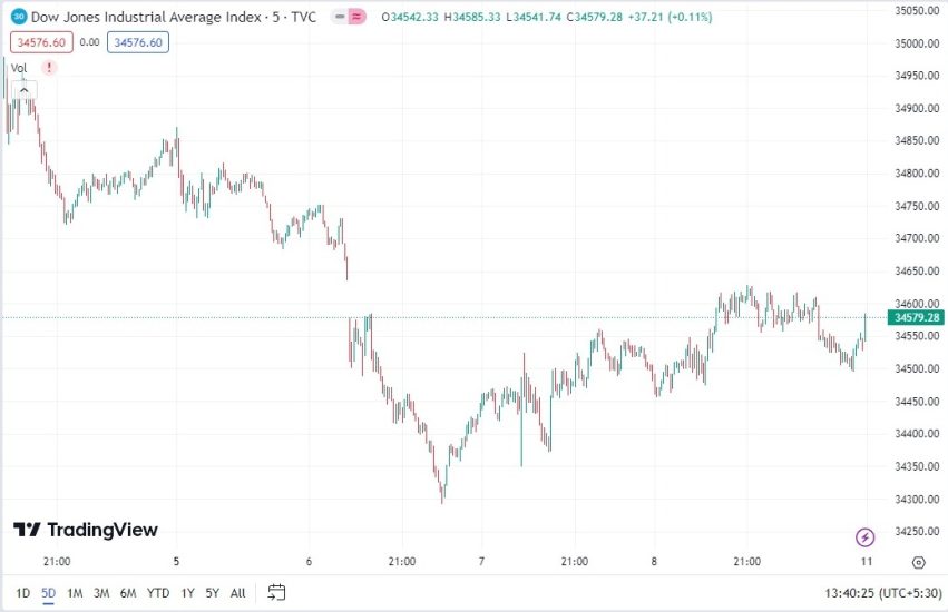 Për sa kohë DOW JONES do të tregtohet nën vlerën 34680 trenda do të jetë rënëse me target 33850. Tregtimi, reagimi negativ ndaj së cilës do e thellonte rënien drejt suportit 33500. Tregtimi mbi vlerën 34680 do të hapte rrugën për testimin e rezistencës 35100