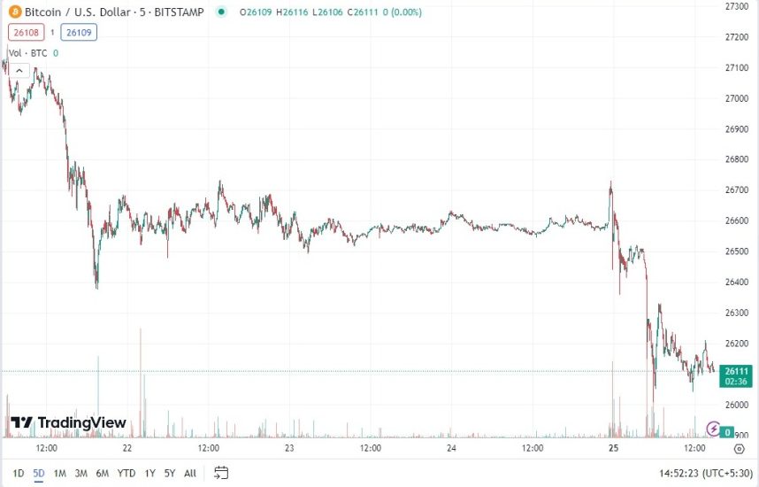 Për sa kohë BTC/USD do të tregtohet nën rezistencën 26820 trenda do të jetë negative me target 25600, reagimi negativ ndaj të cilit e thellon rënien drejt suportit 25200.