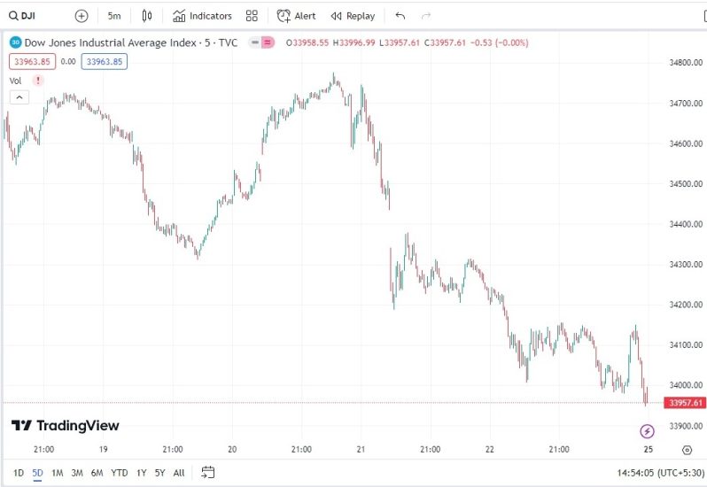 Për sa kohë DOW JONES do të tregtohet nën vlerën 34060 trenda do të jetë bearish drejt targetit 33445, reagimi negativ ndaj të cilit e thellon rënien drejt suportit 33230. Tregtimi mbi vlerën 34060, pak i mundshëm do të pasohej nga testimi i rezistencës 34300