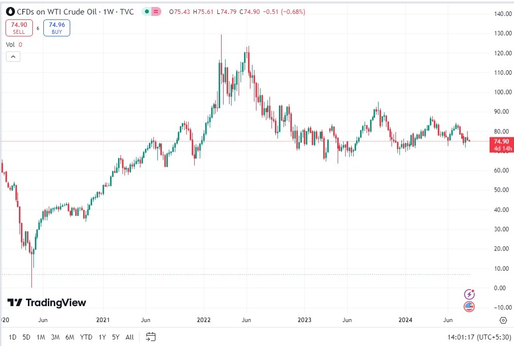 Për sa kohë CRUDE OIL do të tregtohet nën vlerën 75.72 trenda do të jetë negative me target 74.76. Tregtimi mbi vlerën 75.72 do të pasohej nga avancim i mëtejshëm me objektiv 76-76.3