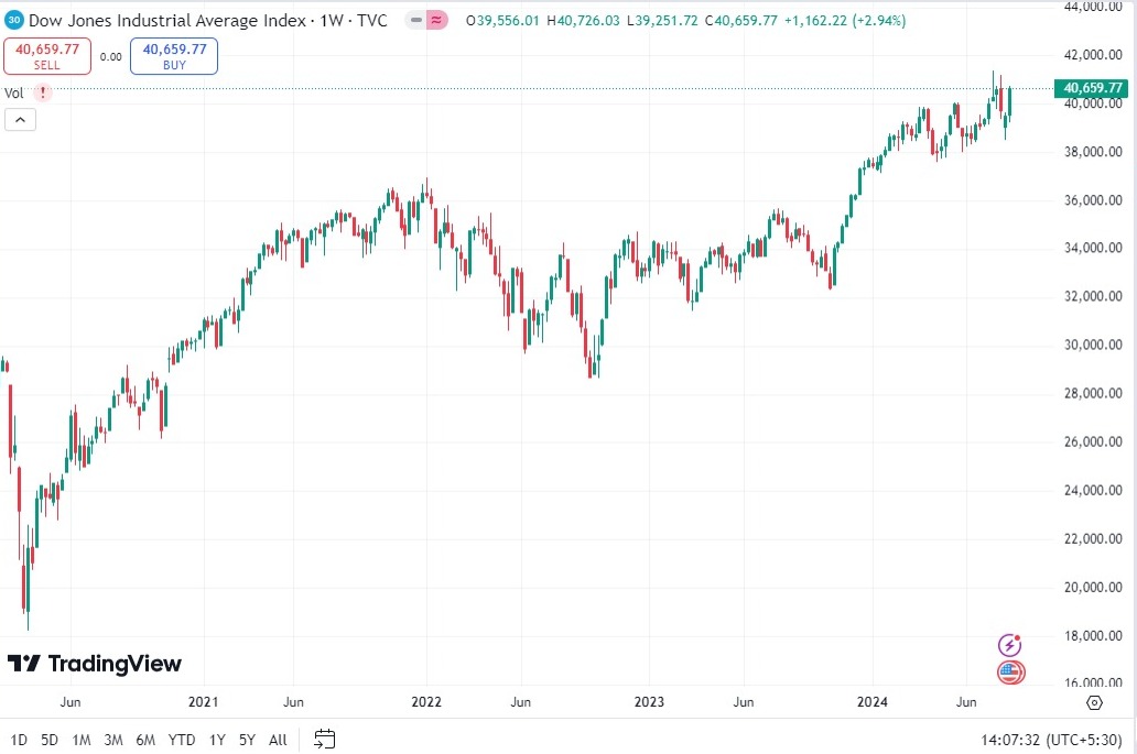 Për sa kohë DOW JONES do të tregtohet nën vlerën 40750 trenda e fillim javës do të jetë korrektuese me target 40100. Tregtimi mbi vlerën 40750 do të pasohej nga avancim i mëtejshëm drejt targetit 41150