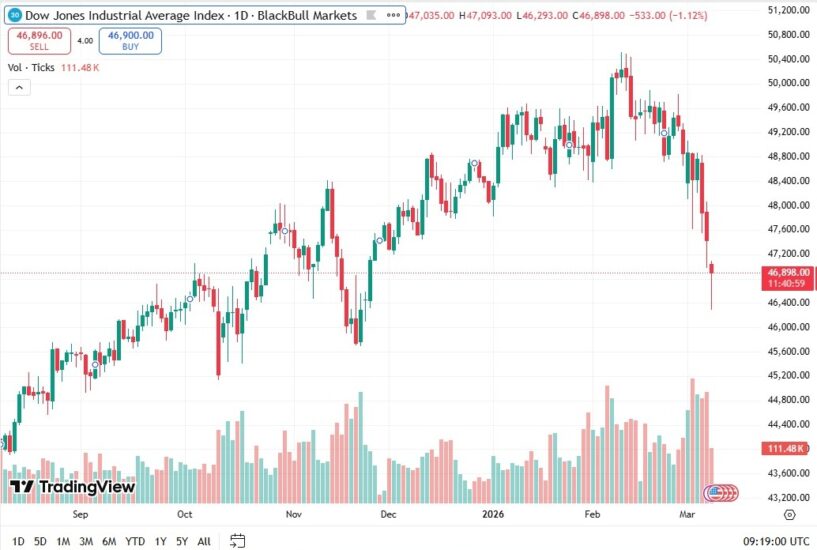 Përsa kohë DOW JONES do të tregtohet mbi vlerën 47370, trenda e fillimjavës do të jetë korrektuese me objektiv 47900. Reagimi pozitiv ndaj tij e avancon lëvizjen rritëse drejt rezistencës 48250. Tregtimi nën vlerën 47370 hap rrugën për akselerim të rënies drejt suportit 46200.
