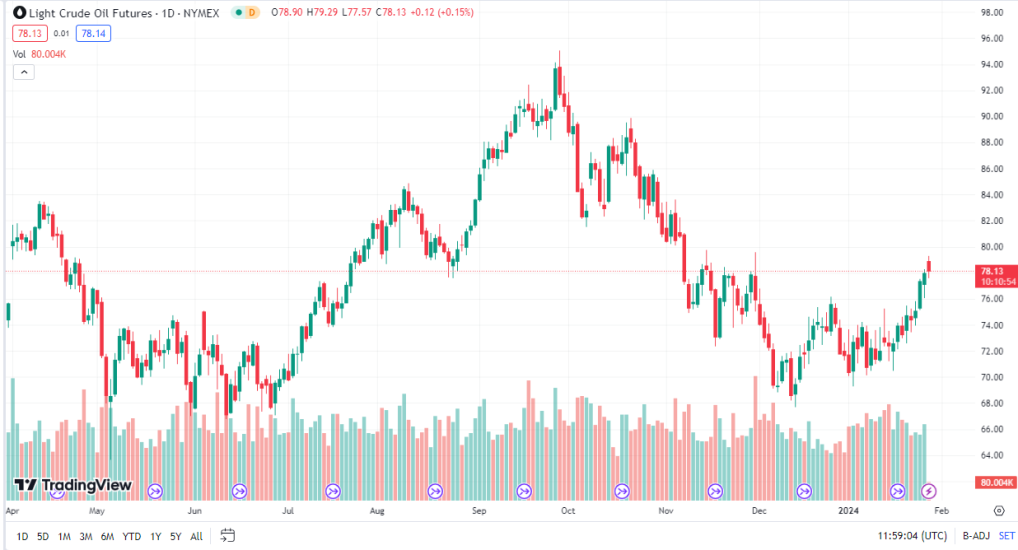Për sa kohë CRUDE OIL do të tregtohet mbi suportin 77.93 trenda do të jetë bullish me objektiv 79.25 e me pas 80.55. Tregtimi nën vlerën 77.93 do ta vononte në kohë këtë tendencë duke u paraprirë nga tentativa e testimit të suportit 76.8