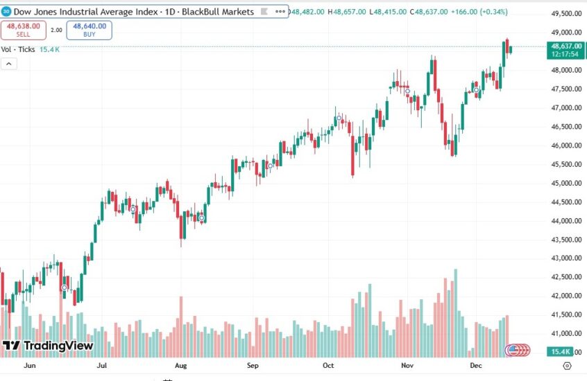 Për sa kohë që indeksi Dow Jones do të tregtohet mbi nivelin 48,300, trendi mbetet pozitiv, me target 49.000. Tregtimi nën nivelin 48,300 do të pasohej nga rënie të mëtejshme drejt suportit 47.650.